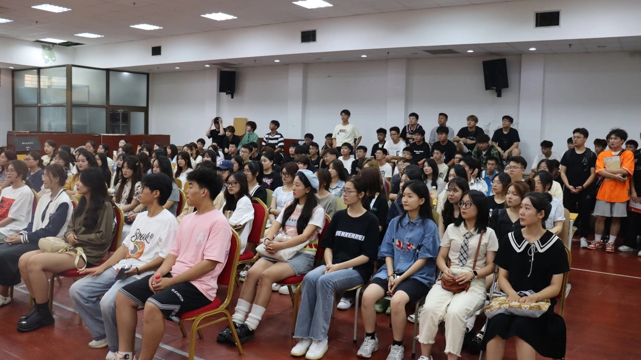 于9月3日晚在德雅楼103召开2023级新生见面会,音乐学院党委副书记孙建华、2023级辅导员朴博文与全体2023级新生共同参与。