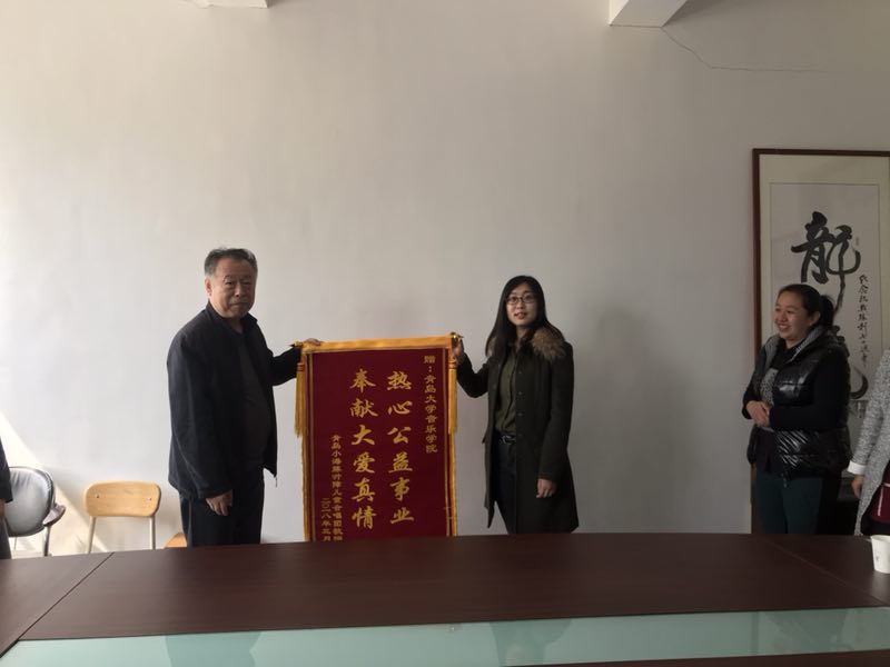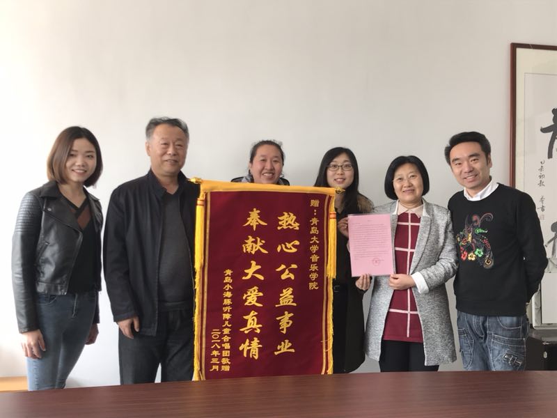 4月3日上午,青岛小海豚听障儿童合唱团发起人薛老师和听障儿童家长代表泰懿妈妈来到音乐学院,向学院赠送锦旗和感谢信,表达对提供志愿服务师生的感激之情。