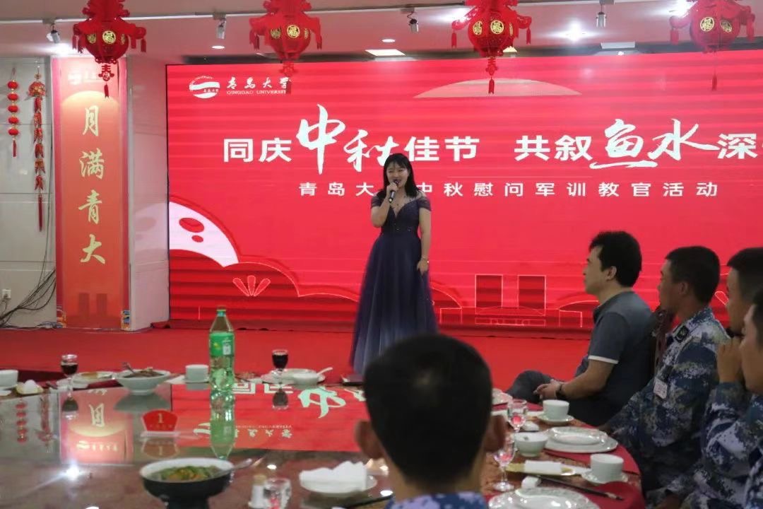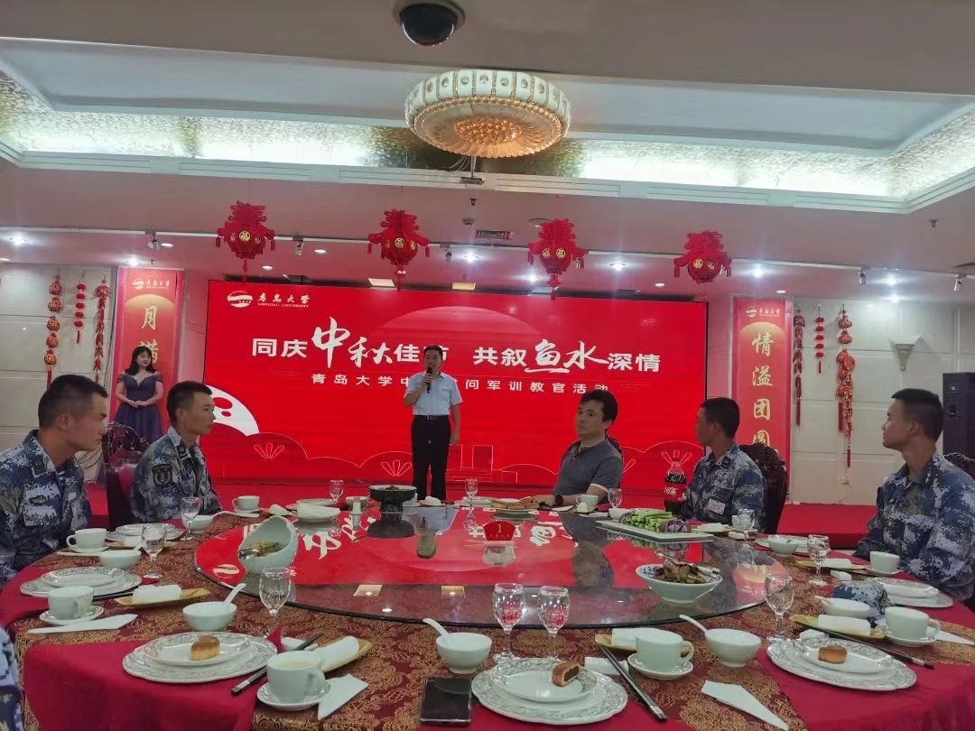 杜方波在致辞中表达了对全体军训教官的感谢,感谢他们用甘于奉献的精神与切实的行动为2021级新生上了生动的一课。希望中秋慰问活动能够为教官们送去青大师生真挚的问候与节日的祝福。