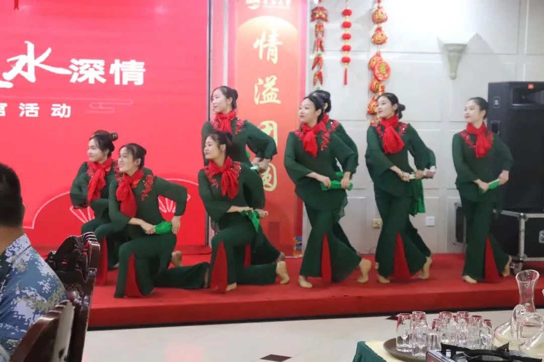部分学生,为教官们表演了歌曲《月牙湾》、《静夜思》、双声部合唱《心脏》、古筝独奏《少年》、舞蹈《映山红》等节目。