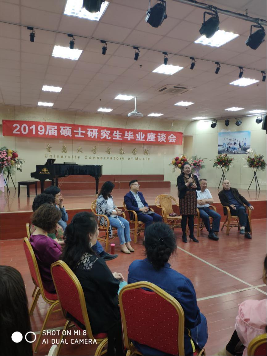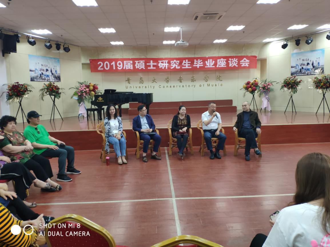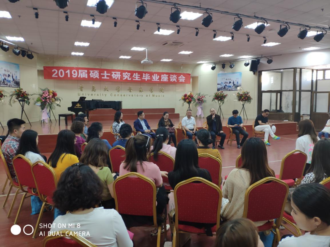 5月23日下午,音乐学院在德雅楼103排练厅举行“音为有你 乐在未来”2019届硕士研究生毕业生座谈会。音乐学院党委书记姜世安、院长王静怡、党委副书记司现鹏、副院长孟雷、院长助理李晓囡,学工办主任迟晓波,6名导师代表、28名2019届毕业生及部分2017级研究生代表参加了座谈会,座谈会由副院长孟雷主持。
