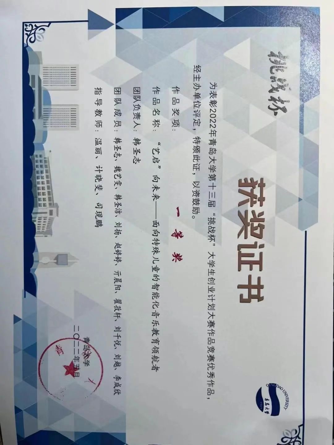 “艺启”志愿者协会曾去往青岛市枯桃小 学、莱西小剑桥幼儿园、临沂市临沭县的三个贫困村、临沂市红花镇中心幼儿园、 小百灵听力语言康复中心、三江特殊教育学校、小海豚听障儿童康复中心等多地, 荣获“大学生留守儿童音乐教育基地”荣誉称号。