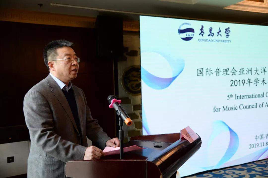 致欢迎辞,向代表们介绍了青大的悠久历史以及音乐学院的学科建设。他表示,音乐是世界文化交流互鉴的重要途径,希望这次大会能为世界音乐的发展和文化艺术的繁荣做出新的贡献。最后,于校长预祝本次论坛取得圆满成功。
