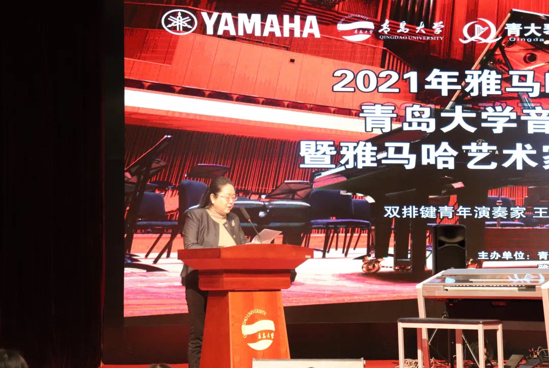 音乐学院向提供奖学金的雅马哈公司和推动本奖学金顺利实施的青大琴行表示衷心的感谢,并对获得奖学金的同学表示热烈的祝贺。对著名的钢琴演奏家鲍释贤先生以及双排键青年演奏家王秉坤和王蕊为典礼演奏表示感谢。王院长在致辞中强调:音乐教育不仅是我们音乐学院的任务,也将是你们未来重要的社会责任。随着国家日益强盛,音乐专业人才将有更广阔的舞台施展才华,音乐器材的生产企业也将会有更加美好的前景。希望通过本次雅马哈奖学金的颁发活动,能够进一步助推音乐学院优良教风学风的建设。更希望本次获奖的同学能够再接再厉,充分发挥表率作用,在学习上取得更新更好的成绩,也希望其他同学积极参与,营造生动活泼、比学赶超的浓郁氛围,建设更加优良的教风、学风,不断取得新的更大成绩,为建设高水平大学做出应有的贡献。
