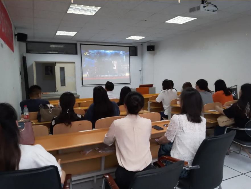 2021年6月25日下午音乐学院党委在德雅楼研究生基地组织党员集中观看了青岛市委组织的“光荣在党50年”纪念章颁发仪式暨“百年风华”主题党日活动。