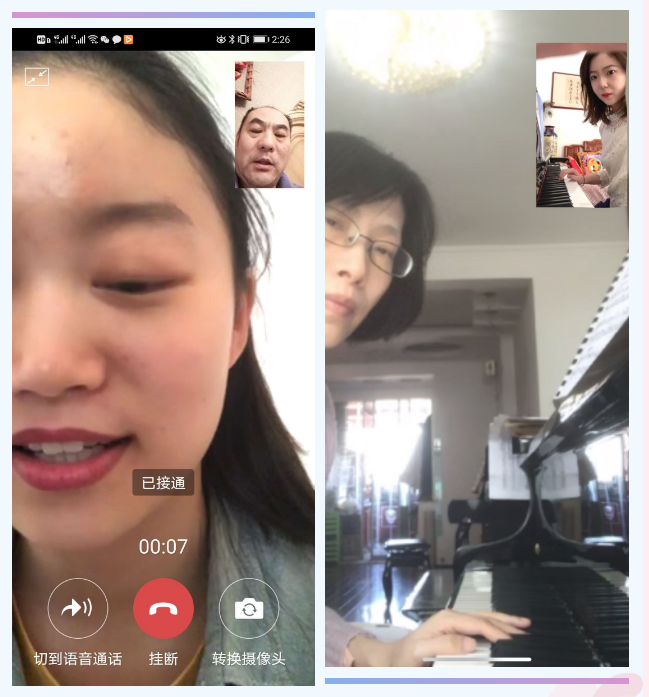 音教系、民乐系老师采用微信视频一对一的授课形式,曲目报给自己的专业课老师,由老师对学生的演奏进行指点,根据学生演奏的实际情况进行示范,针对问题及时的纠正。