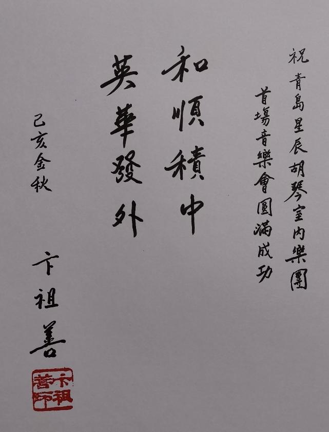 音乐学院交响乐团山东巡演十场,由卞祖善教授执棒二胡协奏《红梅主题随想曲》。5月,在青岛成功举办个人独奏音乐《二胡狂想》,受到一致好评。