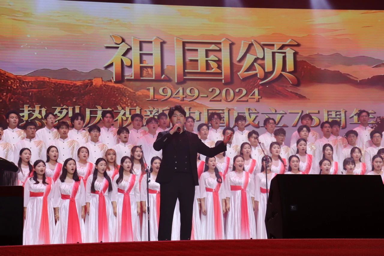 合唱团带来的《祖国颂》,激昂的旋律和深情的歌词,表达了青大人对祖国75周年的赞美和对祖国未来的美好祝愿。