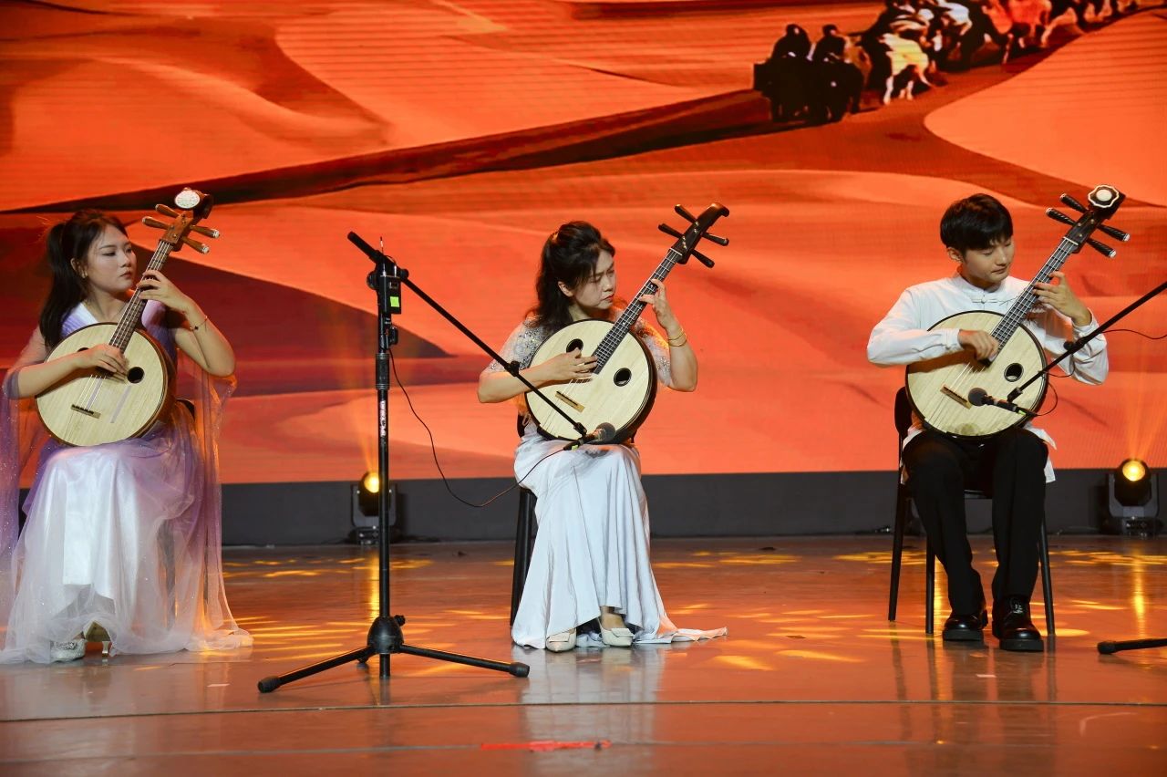 中阮齐奏《丝路驼铃》是音乐的瑰宝,历史的见证。中阮浑厚悠扬的声音诠释了丝绸之路上的异域风情,独具魅力。让观众穿越回大唐,体验驼队在丝绸之路上的冒险和传奇。