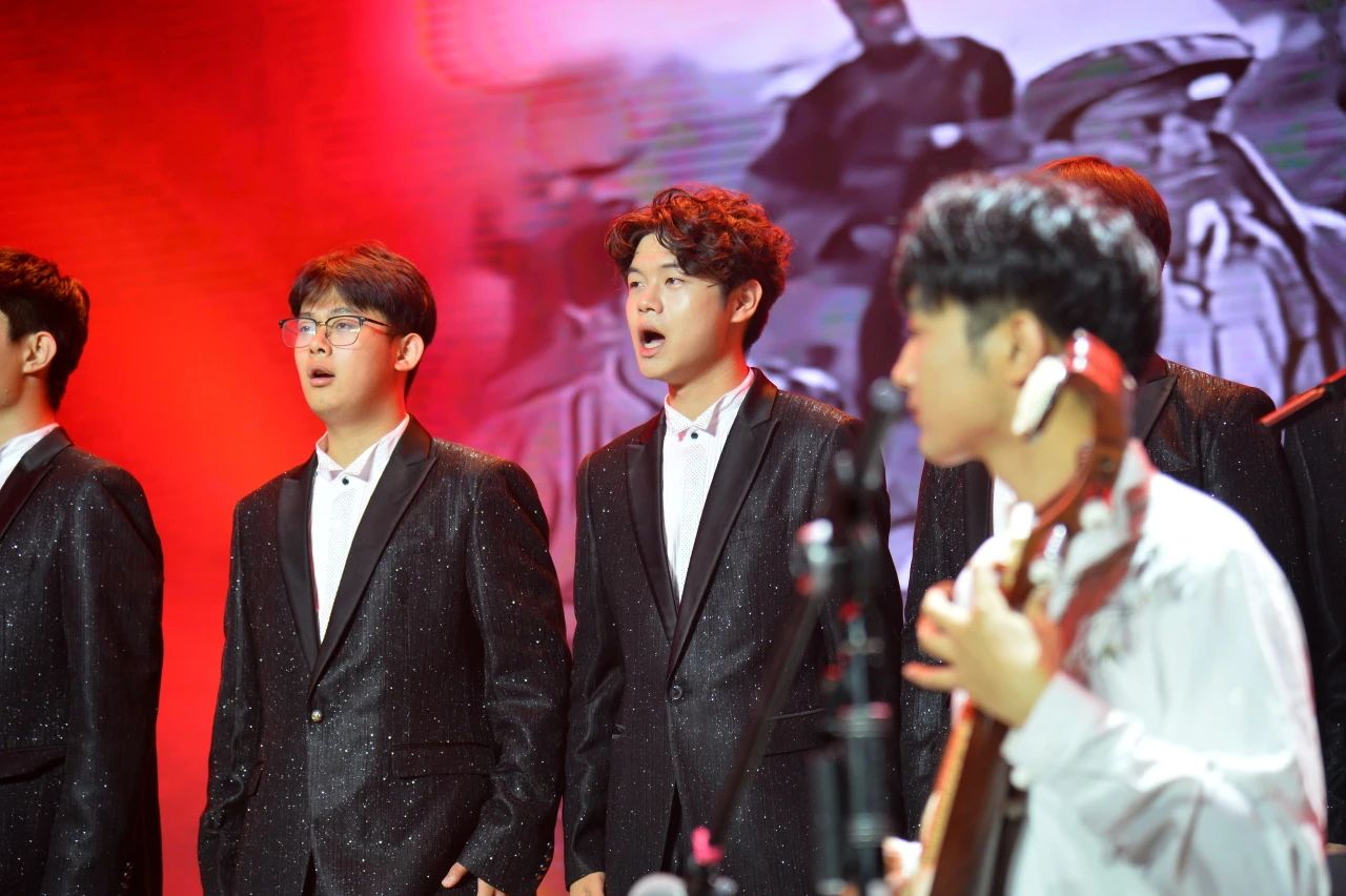 深情的笔触是对祖国的无限热爱和深情祝福,由关志坤、王正源、刘昊政、杨佳欣带来的《今天,我想为你写首歌》。在一句句斩钉截铁的誓词中,再一次向祖国深情告白。