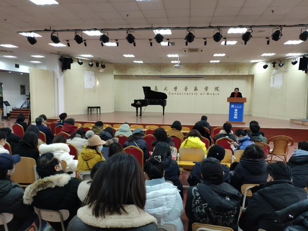2月19日下午,音乐学院在德亚楼103音乐厅举行新学期全体教职工大会,传达落实学校2022年春季学期中层干部学习研讨班总结会精神,部署新学期相关工作任务。院长王静怡主持了会议。