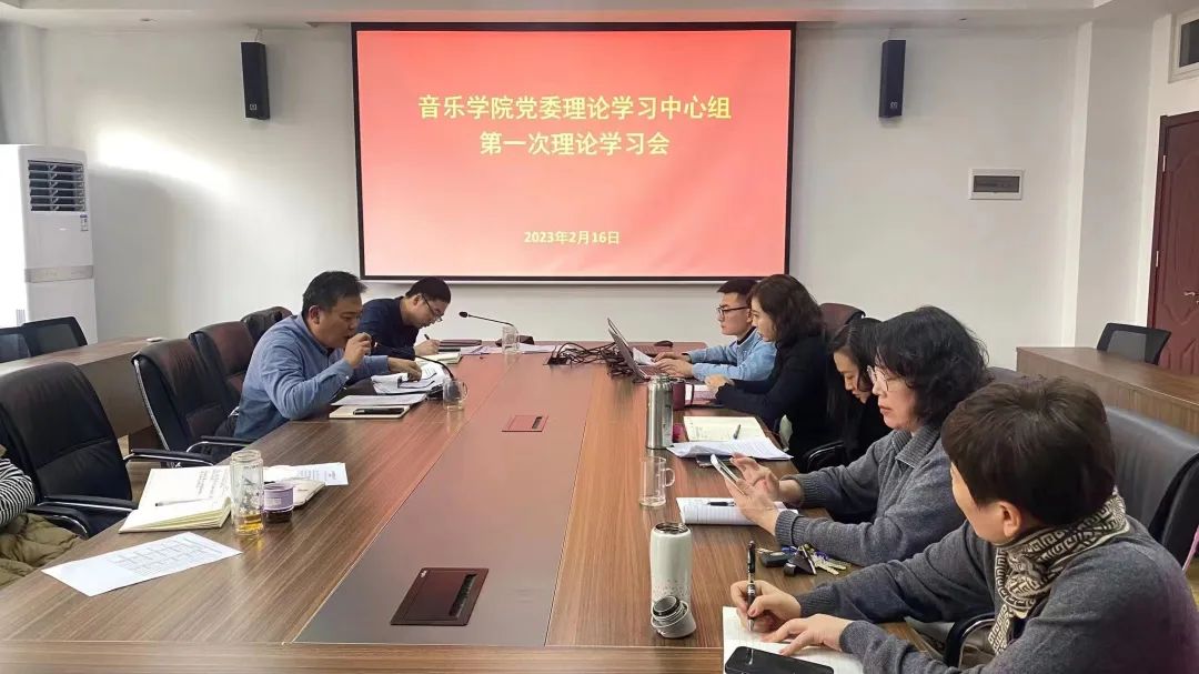 2023年2月16日下午,音乐学院党委理论学习中心组2023年第一次理论学习会在德雅楼二楼会议室召开。学院党委书记李建新主持会议,学院党委委员、行政班子成员、各办公室负责人、院团委书记参加会议。