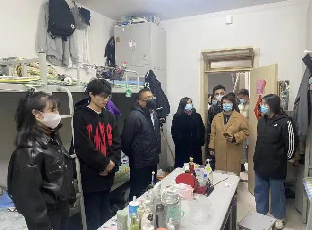 走访过程中,李建新要求同学们要一定要严格遵守疫情防控期间的各项规定,正确佩戴口罩,落实好“一日三检”和体温上报,按时参加核酸检测和抽检。宿舍要做到勤通风、勤消毒,注意用电安全,保持宿舍卫生。同时,他还叮嘱同学们要安心学习,如有特殊情况第一时间及时上报,做到“不信谣、不传谣”。同学们纷纷表示会积极遵守学校的各项要求,积极做好防疫工作,在线不停学,努力不停歇。