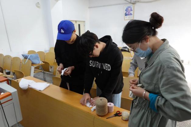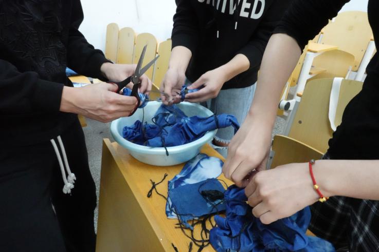 音乐学院于晓菲老师在《中国少数民族艺术专题研究》研究生选修课上,邀请了来自纺织服装学院主讲《中国纺织非遗》的闫旭老师,带领学生们走入了有趣的白族扎染课堂,走进非遗艺术世界。