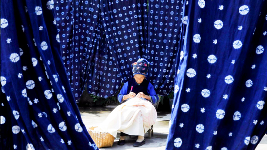 扎染不仅是一种手艺,更是一种生活方式,它引领我们回归质朴与静谧,也引领我们探寻手作的意义和温度。每一幅扎染都是一件匠心独运的艺术品,让我们在线与布的纠葛、蓝与白的交融中,感知背后的文化意蕴和审美情趣。大理白族扎染显示出浓郁的民间艺术风格,一千多种纹样是千百年来白族历史文化的缩影,折射出白族的民情风俗与审美情趣,与各种工艺手段一起构成富有魅力的大理白族织染文化。
