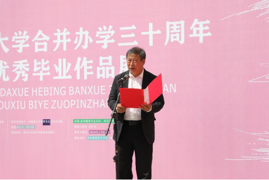 的发展历程和取得的成绩,对美术学院近年来在学生培养、社会服务等方面取得的成绩给予充分肯定,他指出,美术学院举办本次毕业生优秀作品展,这既是向合并办学三十周年献礼的一次重要活动,也是美术学院人才培养质量和水平的一次成果展示。希望美术学院勇做一流学科建设的积极践行者,牢记总书记嘱托,勇担使命,在坚持立德树人,努力培养德艺双馨的艺术人才上做更大努力,在扎根时代生活、创造时代精品上有更大作为,在服务乡村振兴、服务城市发展、服务国家重大战略中肩负更大责任。