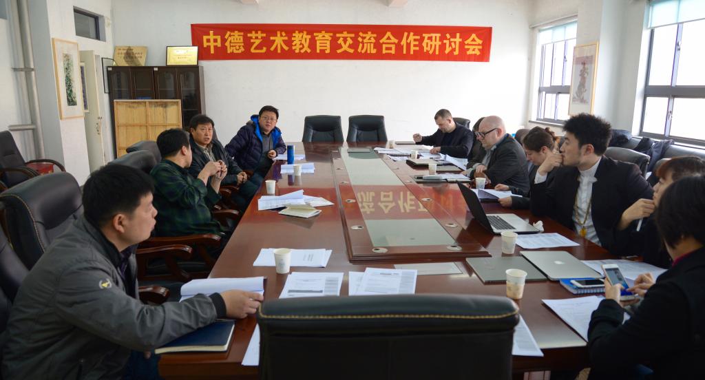 媒体设计学院院长Alexander Bretz及德国艾森美术学院院长Stephan Schneider一行7人来校洽谈中德艺术教育交流合作事宜。双方在美术学院会议室就中德艺术教育的现状、未来在高等教育中开展的合作进行了探讨,德国专家还专门就美术学院新成立的数字媒体艺术系的课程建设、培养方案及师资交流提出宝贵的意见和建议,并积极寻求双方在互动媒体设计、游戏设计等专业方向领域进行联合培养的可能性。