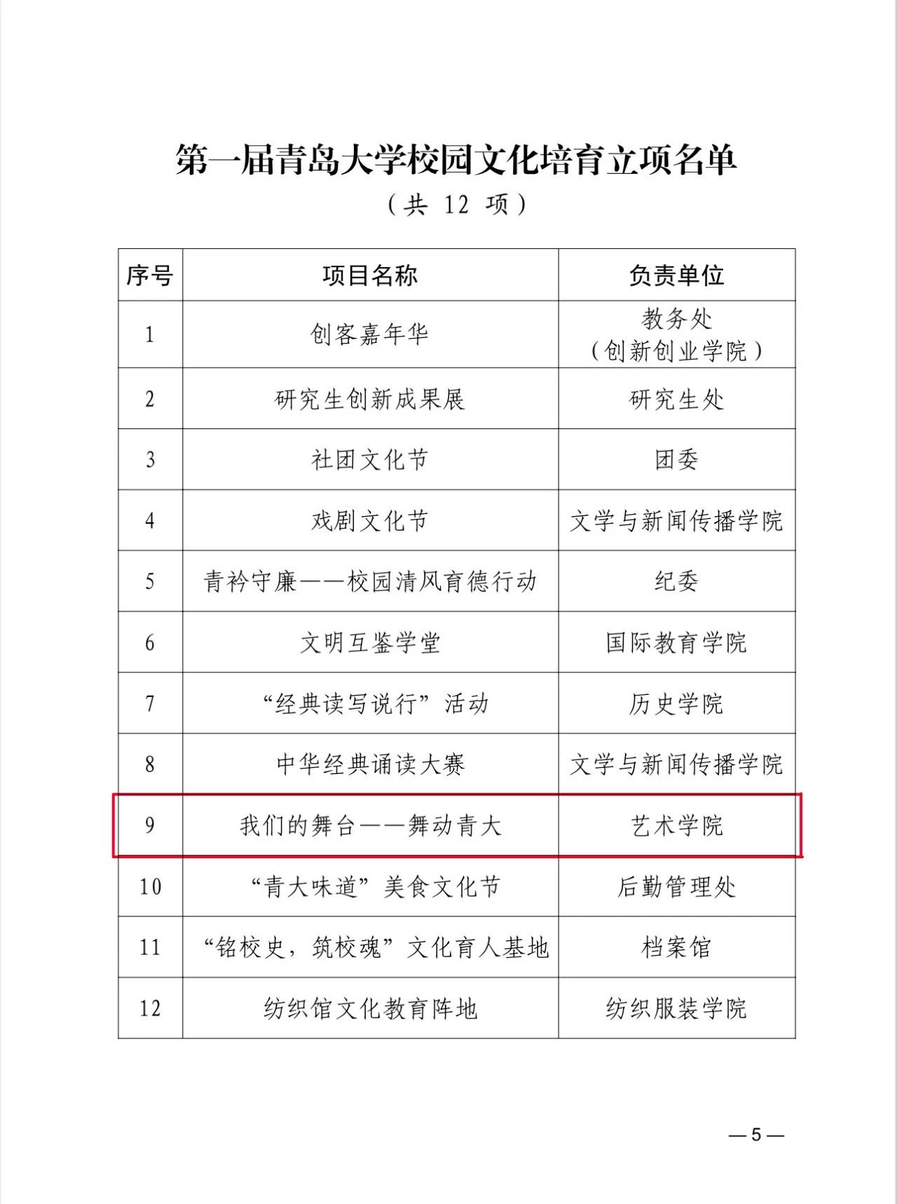 校园文化培育立项名单”共5项集体荣誉以及3项个人先进荣誉。