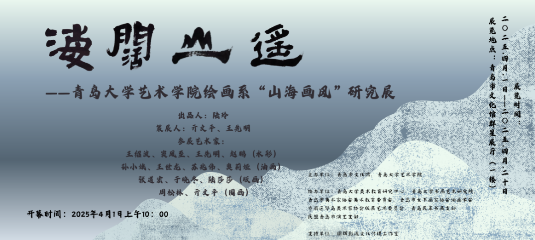 书画艺术研究院、青岛市美术家协会教育艺术艺委会、青岛市女书画家协会油画学会、市南区琴岛美术家协会版画艺术委员会、青岛民革书画支部、民盟青岛市演艺支部协办,亓文平、王先明策展的“海阔山遥—自拍流出