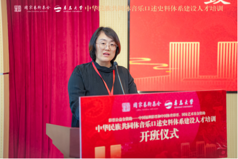 的发展情况。他表示,此次项目以音乐为纽带,以口述史为载体,不仅是对中华优秀传统文化的抢救性保护,更是铸牢中华民族共同体意识的生动实践。他希望各位学员带着对民族文化的敬畏之心、对学术事业的执着追求,全身心投入到项目的学习与实践中,用脚步丈量土地,用话筒记录声音,用文字传承文明。