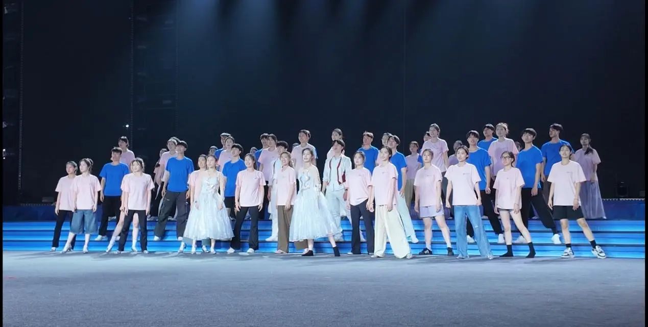 这份闪耀舞台的荣光,凝聚着全体参演师生自六月底以来近一个月的辛勤汗水与非凡毅力。面对重重挑战,舞蹈系的师生们展现出了令人钦佩的专业精神与顽强斗志。晚会排练期间正值青岛极端高温日,排练厅内,即便空调全开,高强度的舞蹈动作依然让汗水瞬间浸透衣衫。然而,酷暑未能阻挡学子们的热情,他们挥汗如雨,一遍遍打磨动作,精益求精,舞衣湿了又干、干了又湿成为常态,用实际行动诠释了“夏练三伏”的坚韧。同时,演出场地——金沙滩啤酒城距离学校路途遥远。为了不耽误排练进度和学业,师生们每日需克服长时间通勤的疲惫,披星戴月,早出晚归。最后,一次性承担开幕式7个不同风格、不同难度的作品演出任务,对每一位参演学生都是巨大的挑战。这意味着他们必须在极短时间内,高效完成多个作品的学习、记忆、动作精准掌握、队形精确变换以及情感充分表达。排练日程排得满满当当,体力与脑力消耗巨大。但同学们迎难而上,互帮互助,在老师的悉心指导下,分解难点,反复练习,最终将每一个动作、每一个队形都刻入脑海,化为舞台上流畅自信的呈现。