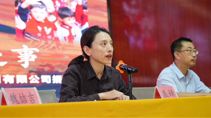 盖婧在致辞中指出,这份温暖的联合力量,不仅是物资的汇聚,更是一份责任的共担。今天所做的一切,都是在用行动践行“助理想之人,成梦想之事”的初心。书包虽轻,但装满了我们的爱,来自青岛的爱。愿它们能成为加依乡小朋友们成长路上的好伙伴,陪伴大家读好书、长本领。祝小朋友们在逐梦的路上走得更稳、更远,将来都能有大作为,绽放属于自己的光彩。