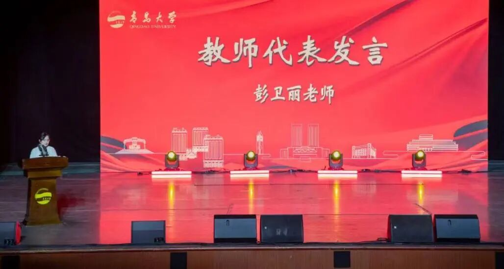 视觉传达系教师彭卫丽作为教师代表发言,她从课程建设、竞赛指导、科学研究三方面分享了自己二十年教学生涯的心得体会,尤其是关于“教研相长”的体会:科研成果能反哺课堂,让教学内容更具深度与前沿性;而教学与竞赛中产生的真实问题,又为科研提供了鲜活的方向与视角。