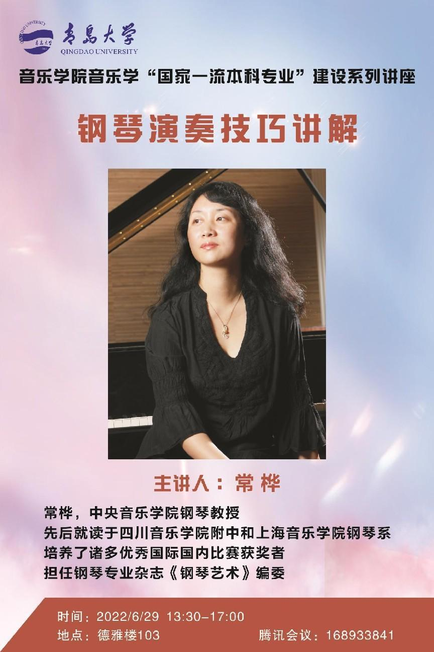 本讲座讲解内容包括钢琴演奏技巧及作品处理,涵盖钢琴的音色、八度与和弦、颤奏等技巧,并配有不同年代时期,不同流派风格的作品演奏与同步讲解,如古典主义乐派的贝多芬钢琴奏鸣曲和浪漫主义乐派的舒伯特奏鸣曲等优秀代表作,为音乐学院全体师生提供多维的钢琴学习思路。