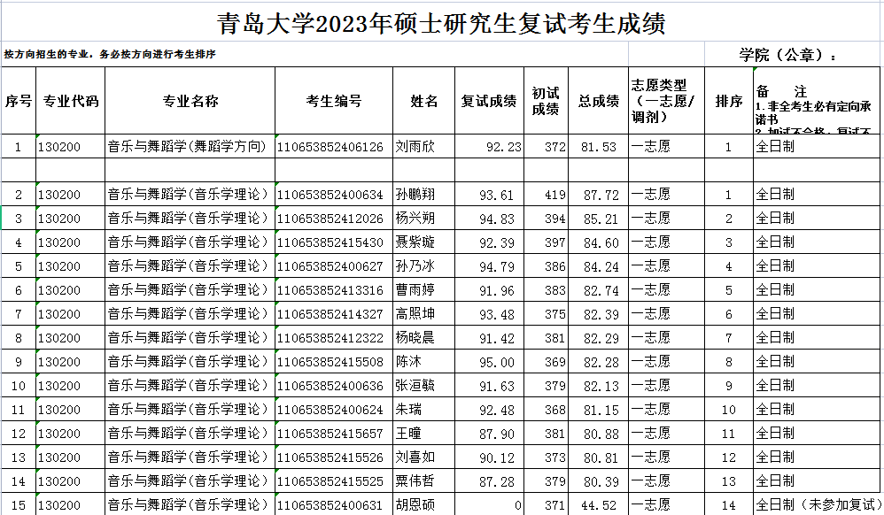 现将2023年自拍流出 音乐学院研究生复试一志愿考生成绩予以公示。