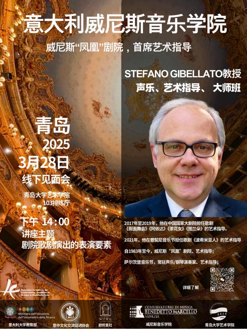 预告| 意大利威尼斯音乐学院,威尼斯“凤凰”剧院,首席艺术指导STEFANO GIBELLATO教授线下见面会