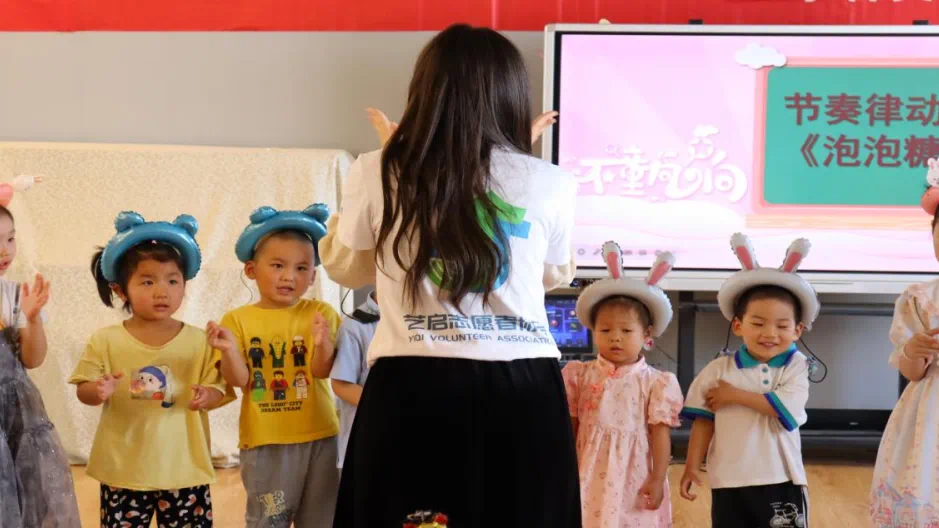 音乐学院艺启志愿服务团队来到小百灵听力语言康复中心,与孩子一起开展“童心向党,快乐同行”庆六一文艺汇演,学校老师,部分家长和学校全部听障儿童参与此次活动。