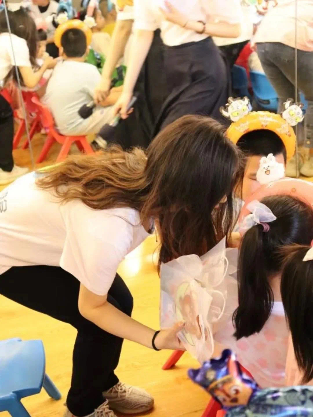 首先,志愿者提前到达活动场地,与工作者一起布置活动会场,并协助老师完成听障儿童引领等工作。
