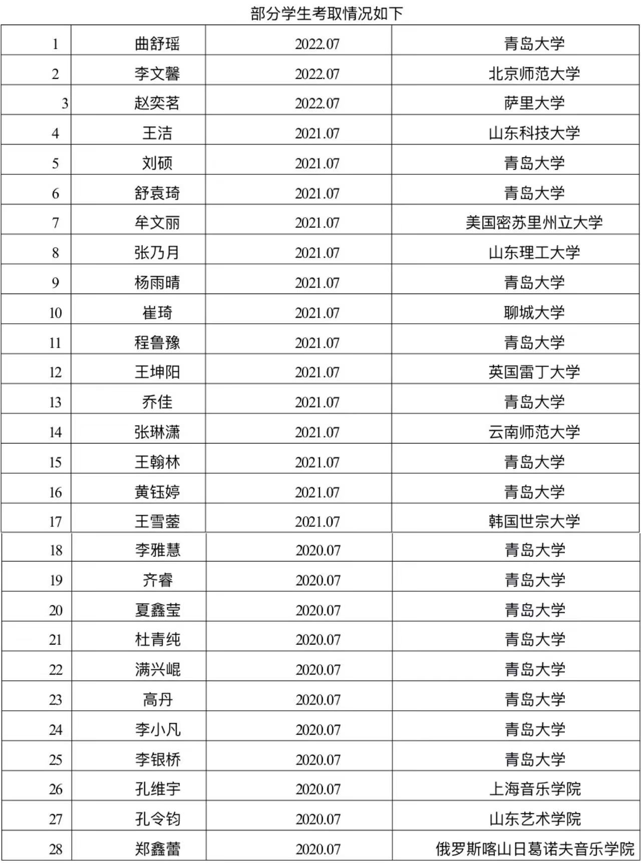 青岛市声乐器乐大赛中,音乐学院获得优秀组织单位奖,2006级音乐表演系学生陈晓琛获青年专业组西洋乐器金奖,2005级音乐表演系学生刘婧超获银奖,2005级音乐表演系学生王丹青获铜奖,自拍流出