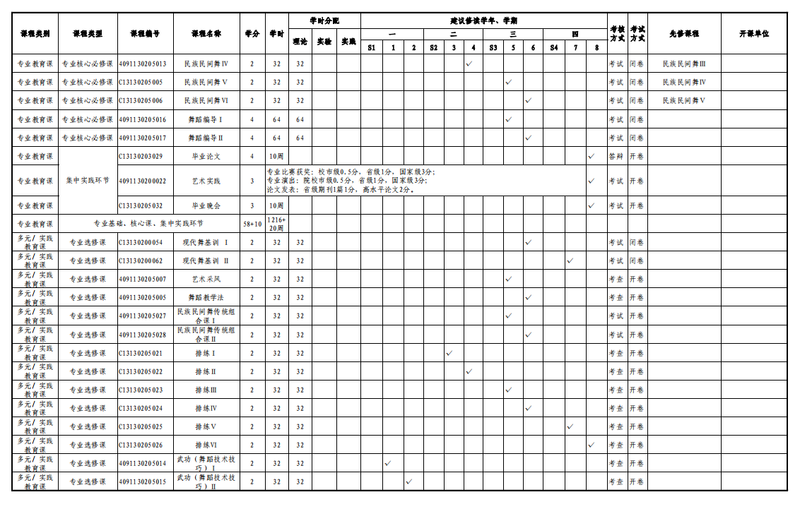 舞蹈学专业人才培养方案(130205)