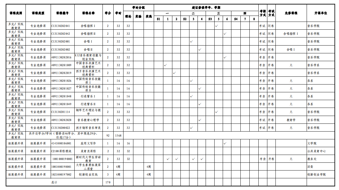 学生在完成规定的必修课程和总学分外,拓展提升项目和第二课堂达标后方可毕业。完成规定的必修课程和达到总学分 170 学分。