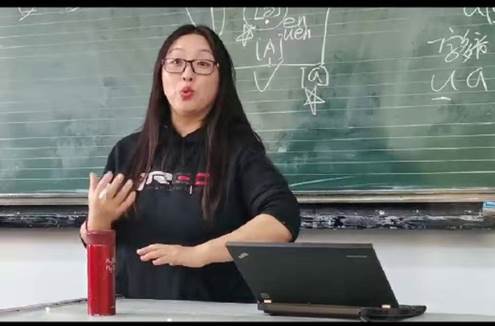 讲授新课环节,徐老师从“发音特点、发声练习、常见问题、歌词练习、曲目听辨”几方面对“怀来辙”、“灰堆辙”中的四个韵母进行了详细的讲解和分析。因为课程内容学生已经通过雨课堂提前进行了预习,所以在课上,学生可以直接演唱本节课的曲目,现场进行展示和听辨。授课中,徐老师不时对已学内容进行回顾和提问,还在听辨曲目时介绍了王立平、郑秋枫、王洛宾、徐沛东等作曲家以及歌剧《江姐》的有关内容。这不仅仅拓宽了学生的知识视野,还对学生进行了思想教育。