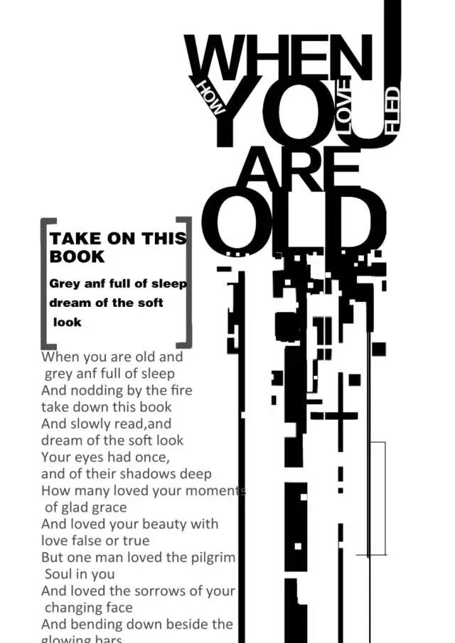 用文字去传达一种情感和信息,在编排中选择合适的字体,注意版式的空间关系和色彩关系,学习其中的设计风格和方法,加深对文字编排的认识。