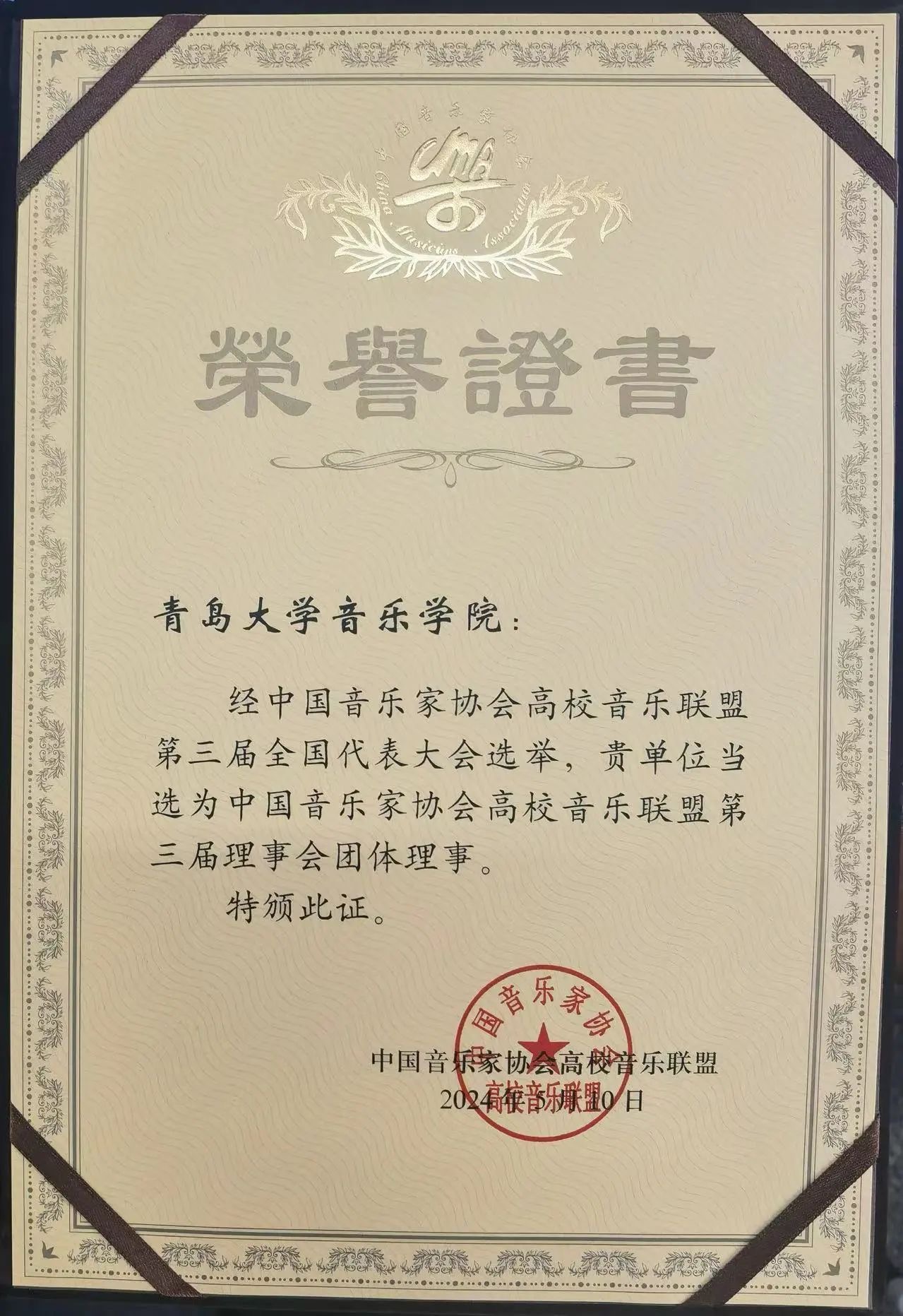 音乐学院当选为中国音乐家协会高校音乐联盟第三届理事会团体理事。