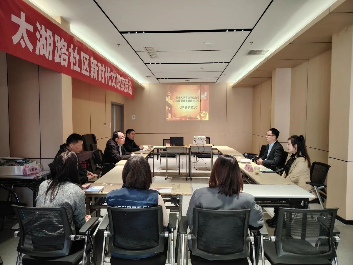 为贯彻落实学校2024年春季学期中层干部学习研讨班交流总结会会议精神,与学校驻地社区党组织在更大范围、更宽领域、更深层次上互融互通,打造区域党建共同体,提升服务社会水平,4月17日,音乐学院党委与市南区八大湖街道太湖路社区委员会签署党建共建协议。