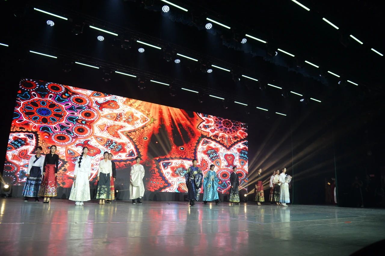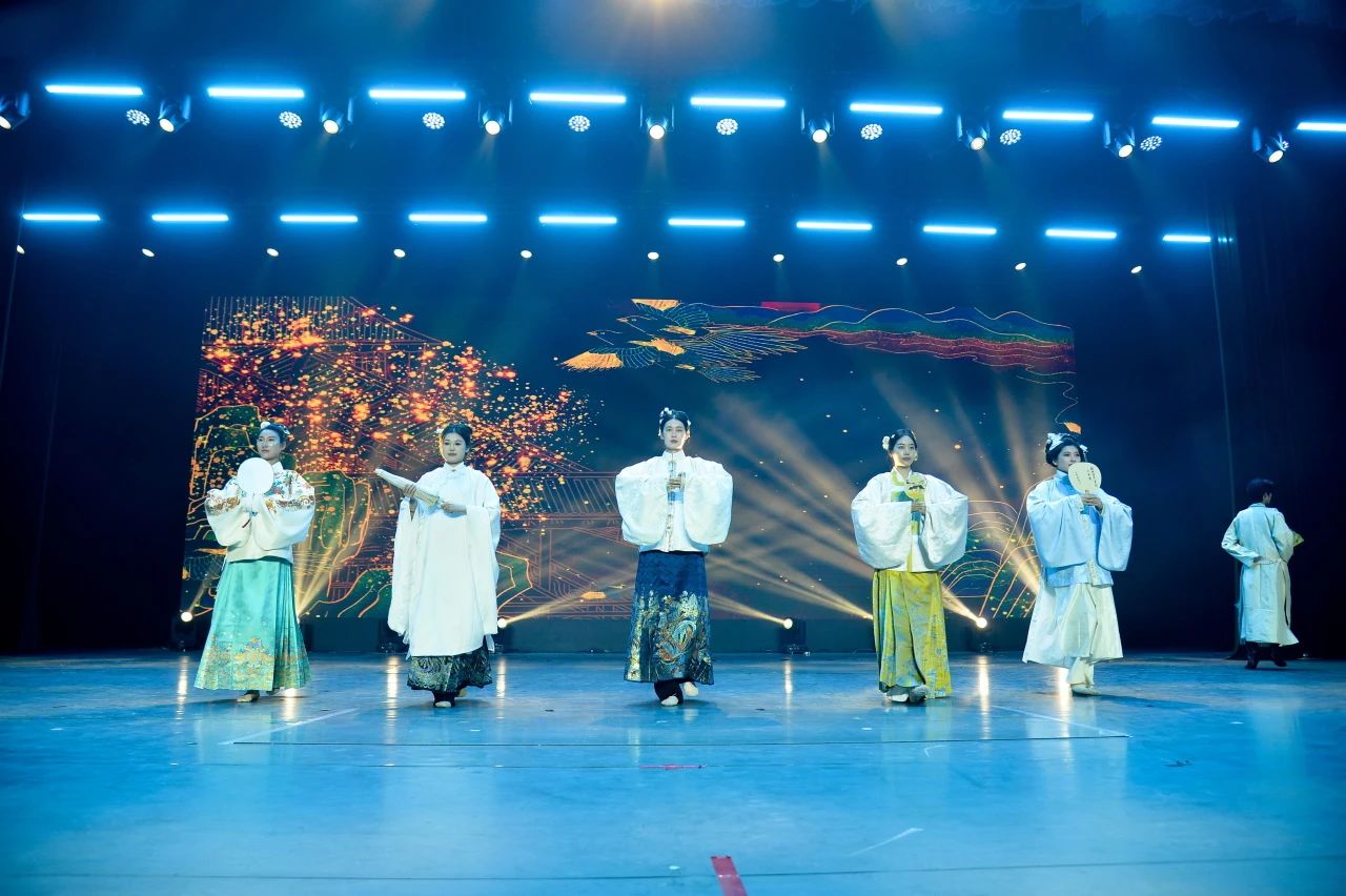 纺织服装学院设计与表演专业学生带来的《盛世流光 锦绣霓裳》尽显古风韵味。汉服不仅是中华民族的传统服饰,更是中华民族悠久历史和灿烂文化的缩影。