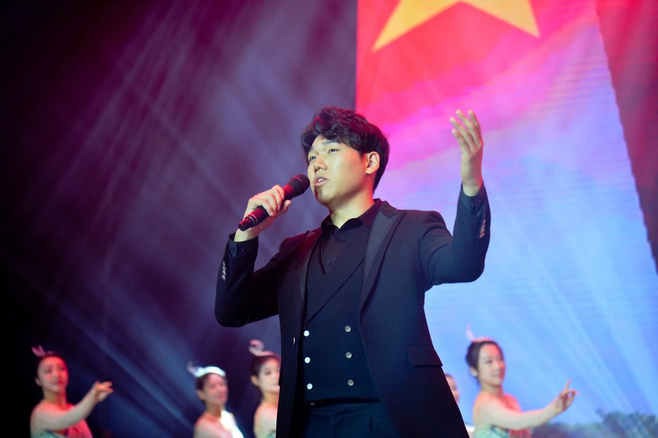 深情的笔触是对祖国的无限热爱和深情祝福,由关志坤、王正源、刘昊政、杨佳欣带来的《今天,我想为你写首歌》。在一句句斩钉截铁的誓词中,再一次向祖国深情告白。