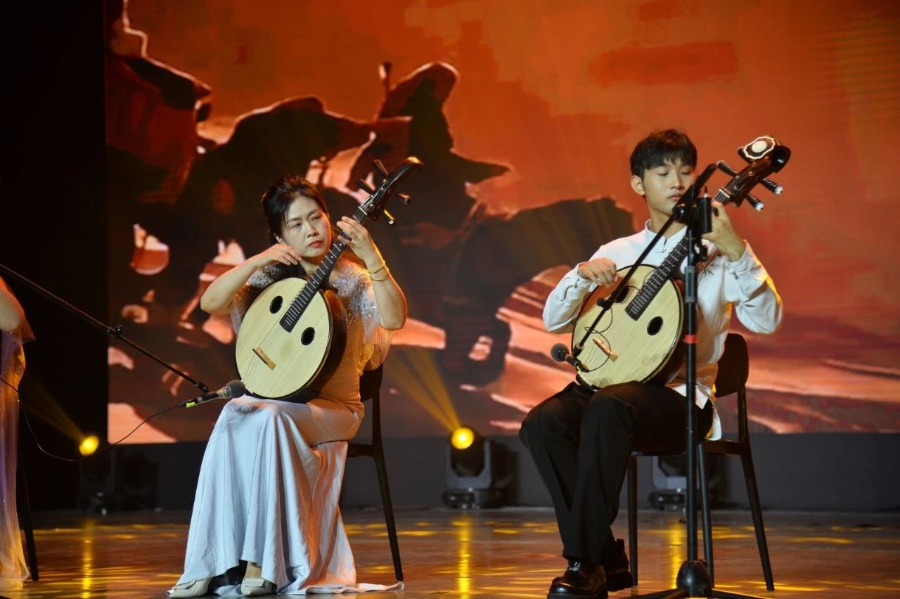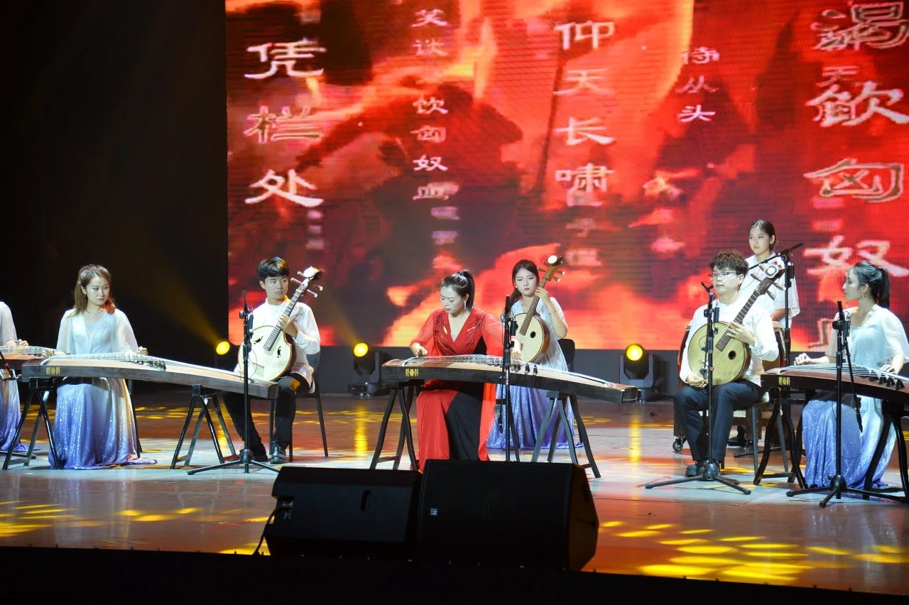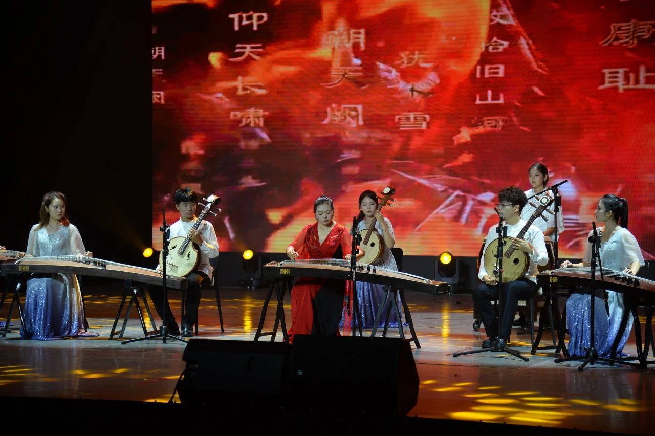 筝阮乐团带来的《满江红》。古筝和阮的旋律合奏的音调高昂悲壮感受中华民族深厚的文化底蕴,凛凛有生气焉。