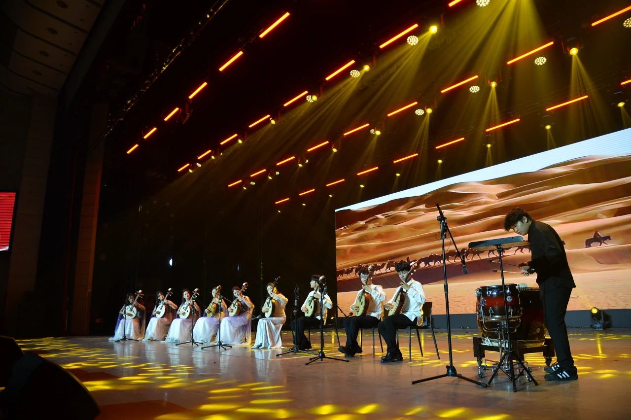 中阮齐奏《丝路驼铃》是音乐的瑰宝,历史的见证。中阮浑厚悠扬的声音诠释了丝绸之路上的异域风情,独具魅力。让观众穿越回大唐,体验驼队在丝绸之路上的冒险和传奇。