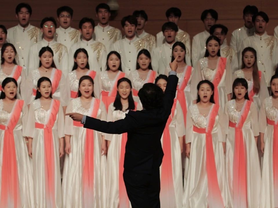 的师生们用歌声诠释了新时代青年的责任与担当,表达了对祖国繁荣富强的美好祝愿。