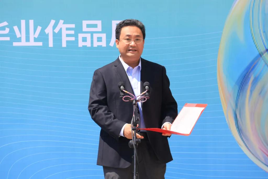 的发展历程和取得的成绩,对美术学院近年来在学生培养、社会服务等方面取得的成绩给予充分肯定。他指出本次毕业生优秀作品展,是美术学院多年来开展校地合作、探索人才培养模式改革的一次成果展示,更是向岛城人民汇报美术学院人才培养的成果,听取大家的宝贵意见和建议。希望美术学院勇做一流学科建设的积极践行者,牢记嘱托,勇担使命,立德树人,在培养德艺双馨的艺术人才上有更大作为,在扎根时代生活、创造时代精品上有更大作为,在服务乡村振兴、服务城市发展中有更大作为。