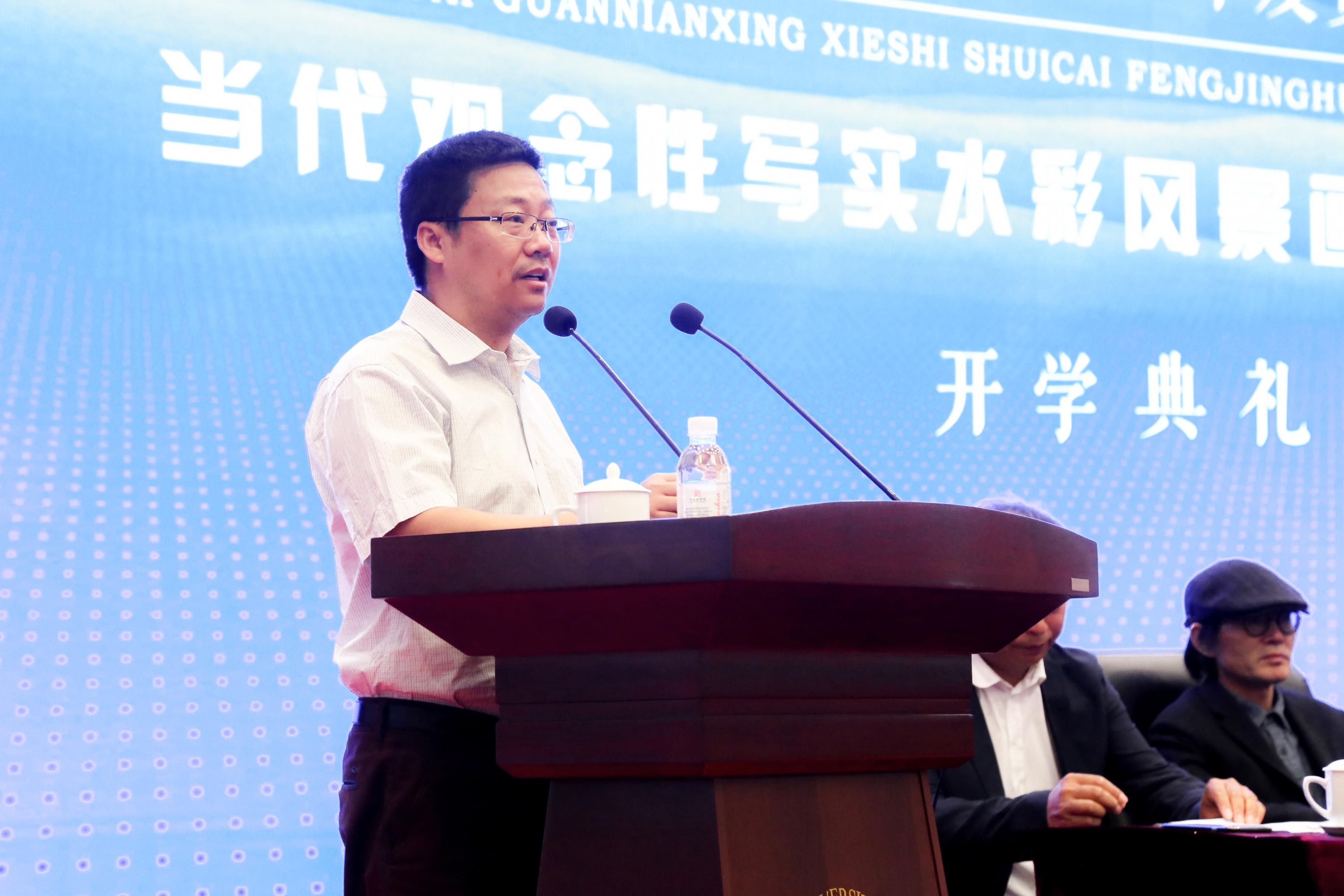 夏东伟校长在致辞中向莅临开学典礼的各位专家表示了欢迎和向入选的学员表示了祝贺。他指出,青岛是水彩画传入中国最早的城市之一,也是著名的写生基地。水彩画作为世界艺术瑰宝,在融入了中国的传统美学思想后,具有了情与景的真实美、民族化的意象美、有与无的虚实美、节奏与韵味的动静美等鲜明特点,成为中西方文化艺术融合的典范。国家艺术基金委将“当代观念性写实水彩风景画青年人才培训”项目放在自拍流出
