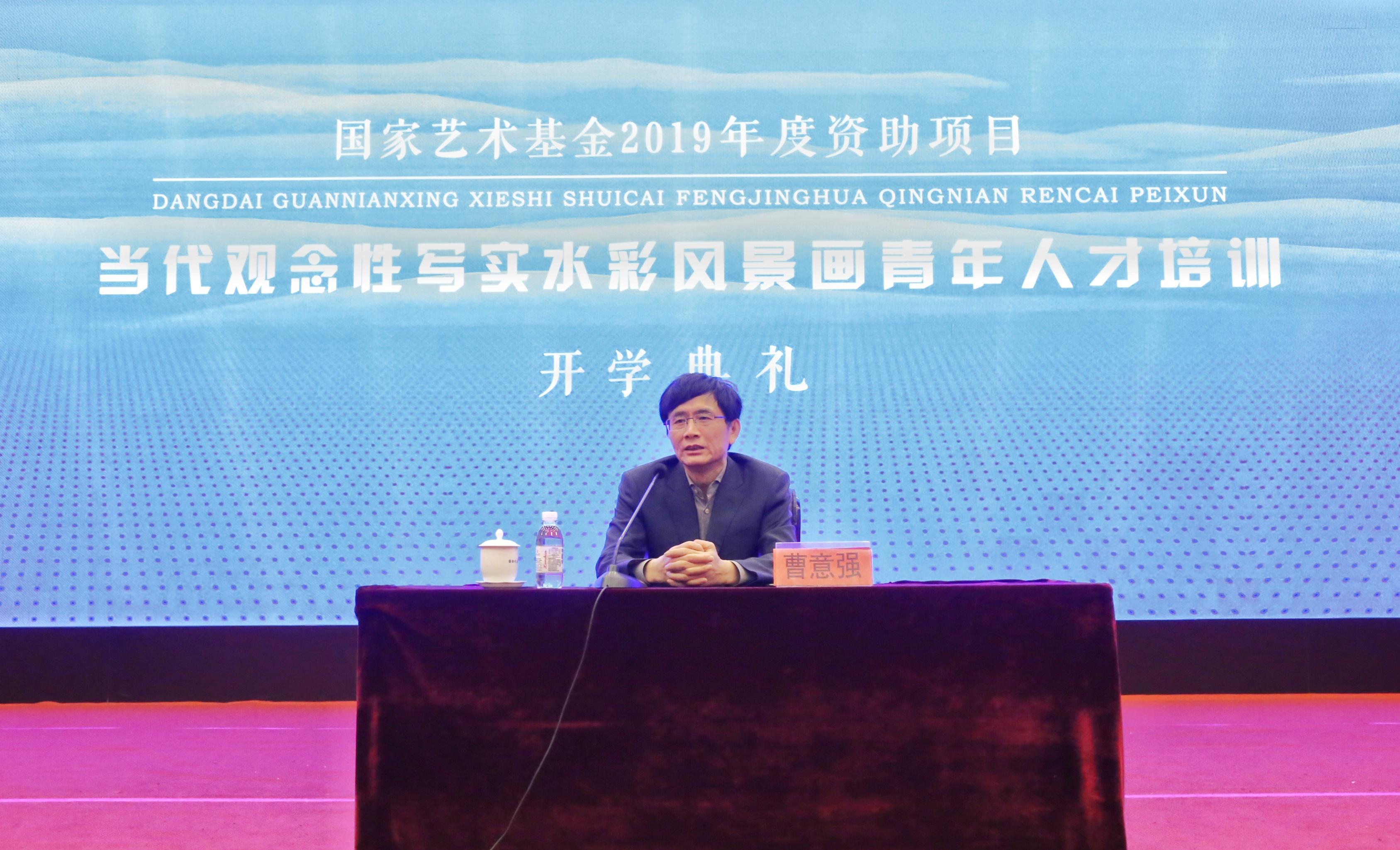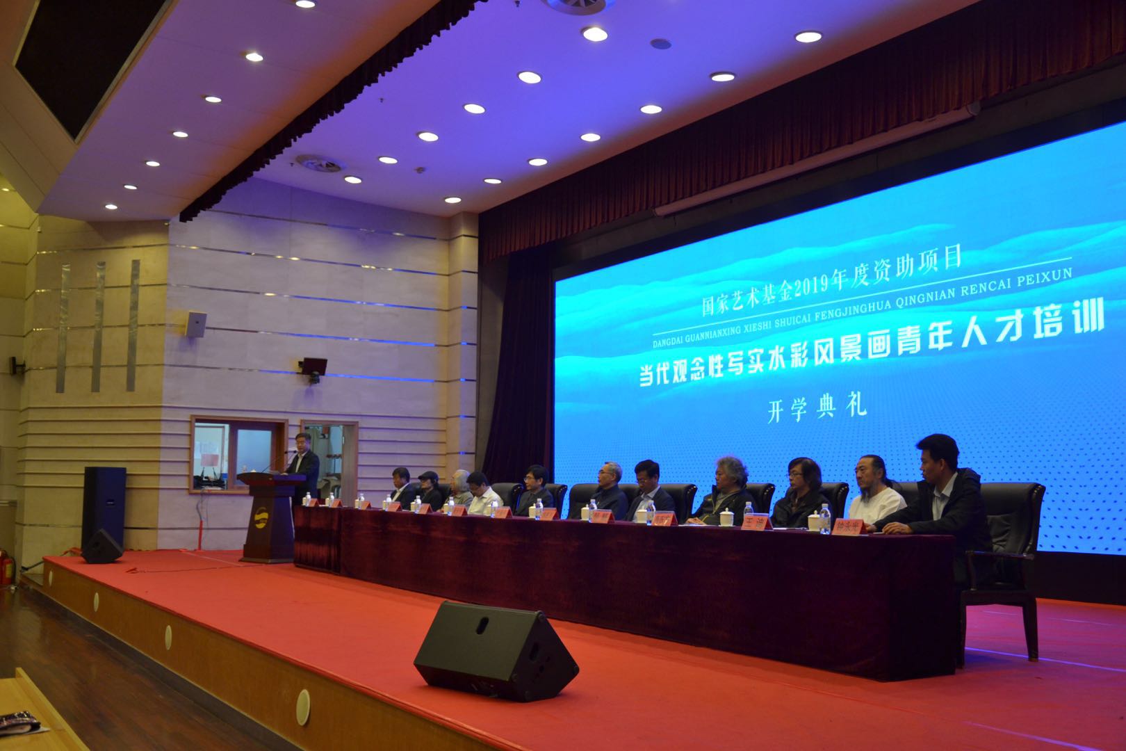 美术学院主持的国家艺术基金2019年度资助项目“当代观念性写实水彩风景画青年人才培训”开学典礼在国际学术交流中心举行。全国艺术专业硕士教育指导委员会美术设计分委会召集人、中国美术学院艺术人文学院院长曹意强,山东省文化厅原厅长亢清泉,中国艺术研究院研究生院常务副院长兼中国画院副院长刘万鸣,中国美术家协会理论处处长冯令刚,青岛市文联党组书记魏胜吉,校长夏东伟等专家和领导出席了开学典礼。典礼仪式由美术学院院长王绍波主持。