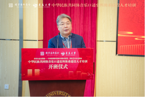 的发展情况。他表示,此次项目以音乐为纽带,以口述史为载体,不仅是对中华优秀传统文化的抢救性保护,更是铸牢中华民族共同体意识的生动实践。他希望各位学员带着对民族文化的敬畏之心、对学术事业的执着追求,全身心投入到项目的学习与实践中,用脚步丈量土地,用话筒记录声音,用文字传承文明。