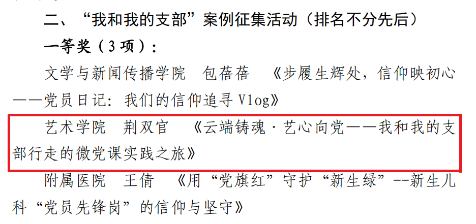 两位师生表现突出,其中葛海燕老师荣获“我来讲党课”大赛一等奖,荆双官同学荣获“我和我的支部”大赛一等奖共两项荣誉。