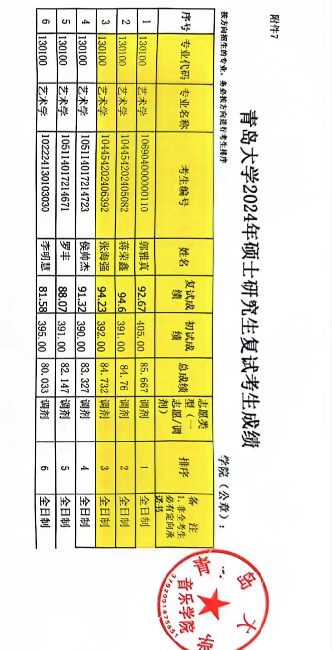 各位考生:现将2024年自拍流出 音乐学院研究生调剂考生成绩予以公示。如有异议,请联系自拍流出 招生负责老师。联系人:毕老师 电话:85953738